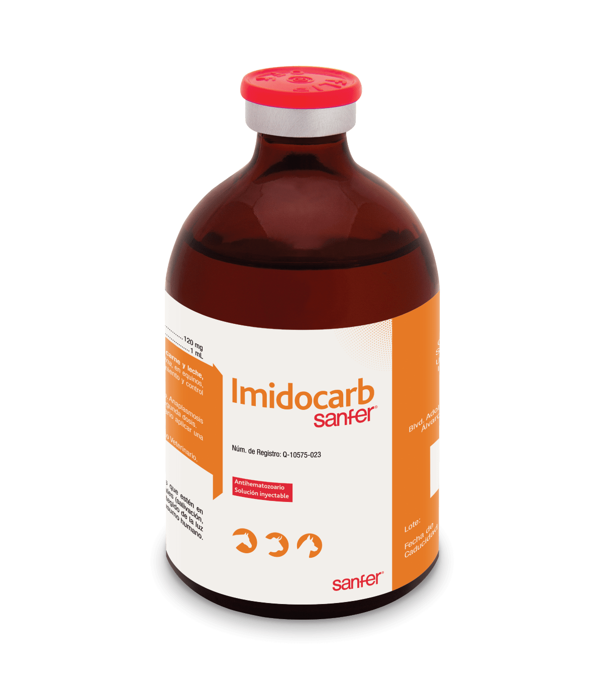 Imidocarb Sanfer® Núm. de Registro: Q-10575-023. Uso veterinario. Consulte al Médico Veterinario. Su venta requiere receta médica.® Marca Registrada.